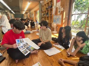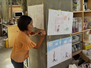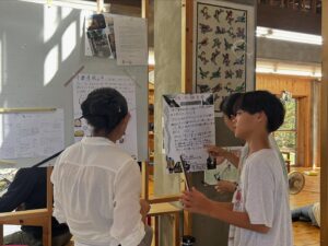 その後は、学校の”どこでも”好きなところに自分の発表を張りつけ、お互いに旅の報告を見合う姿が見られました📝